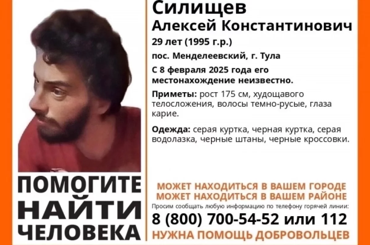 В посёлке Менделеевский в Туле разыскивают 29-летнго жителя Алексея Силищева. Об этом информируют волонтеры поискового отряда «ЛизаАлерт».