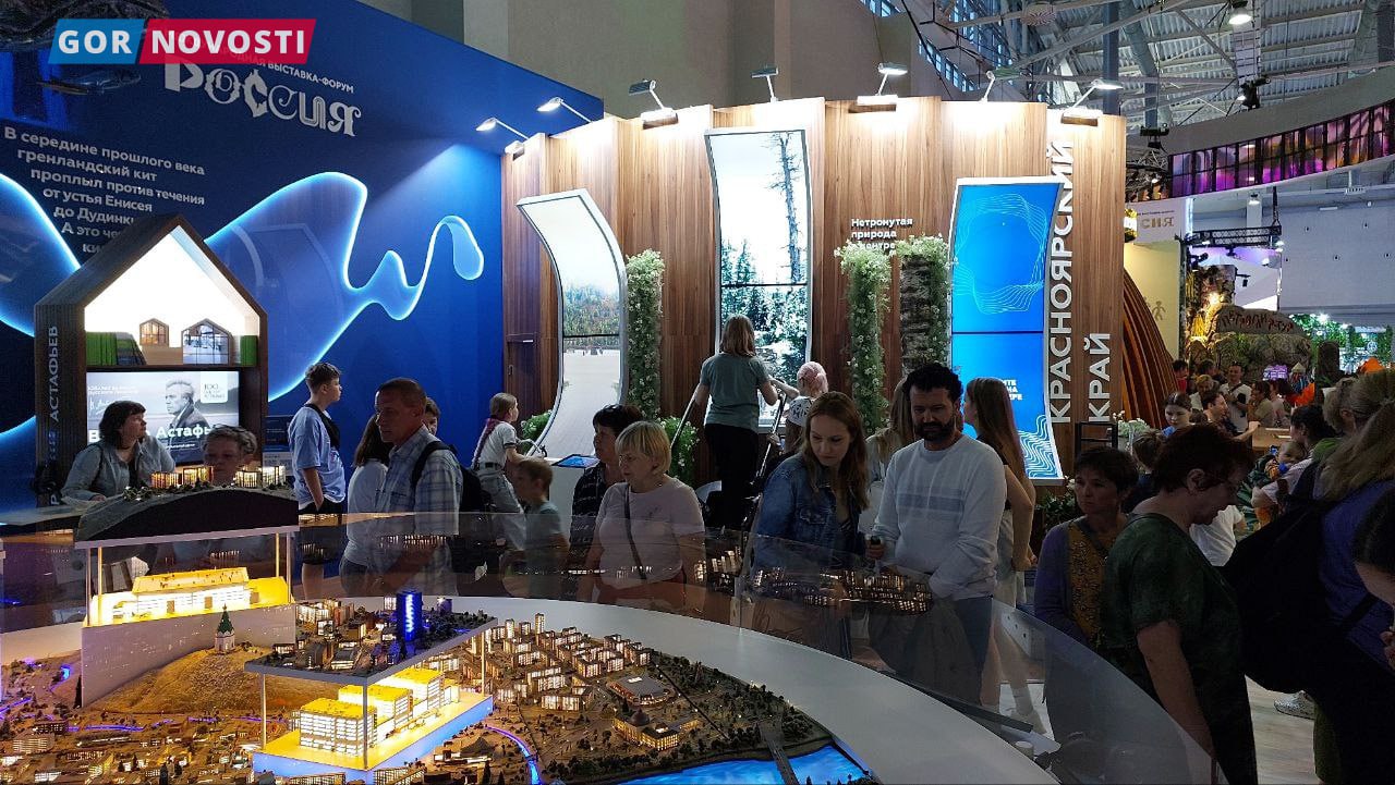 В Москве на ВДНХ до 8 июля работает международная выставка «Россия» (0+). Там есть и экспозиция Красноярского края. Она знакомит зрителей с уникальной природой, инфраструктурой, человеческим капиталом, полезными ископаемыми и энергоресурсами региона.
