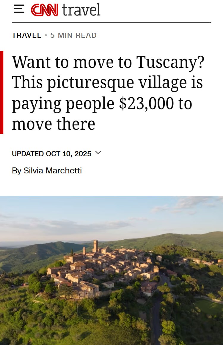🇮🇹Почти 2 млн рублей готовы заплатить власти Италии за переезд в деревню Тосканы