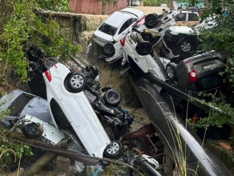 Очевидцы сняли на видео, как на улице Ручей Видный дождевые потоки снесли со склона припаркованные автомобили. На кадрах мощное течение тянет за собой с десяток машин, одна из них- переворачивается и падает на крышу соседнего авто. По итогу образовалась плотина буквально из машинного месива.