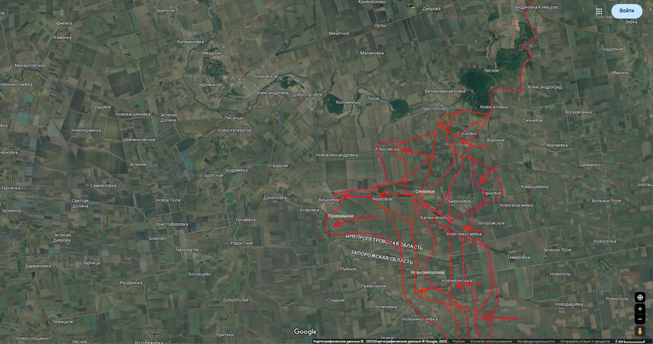 В целом очень впечатляющий прорыв наших частей. Еще немного и рокадная трасса Покровское — Гуляйполе будет перерезана. Около 7 км до нее осталось.
