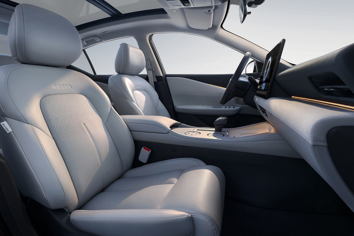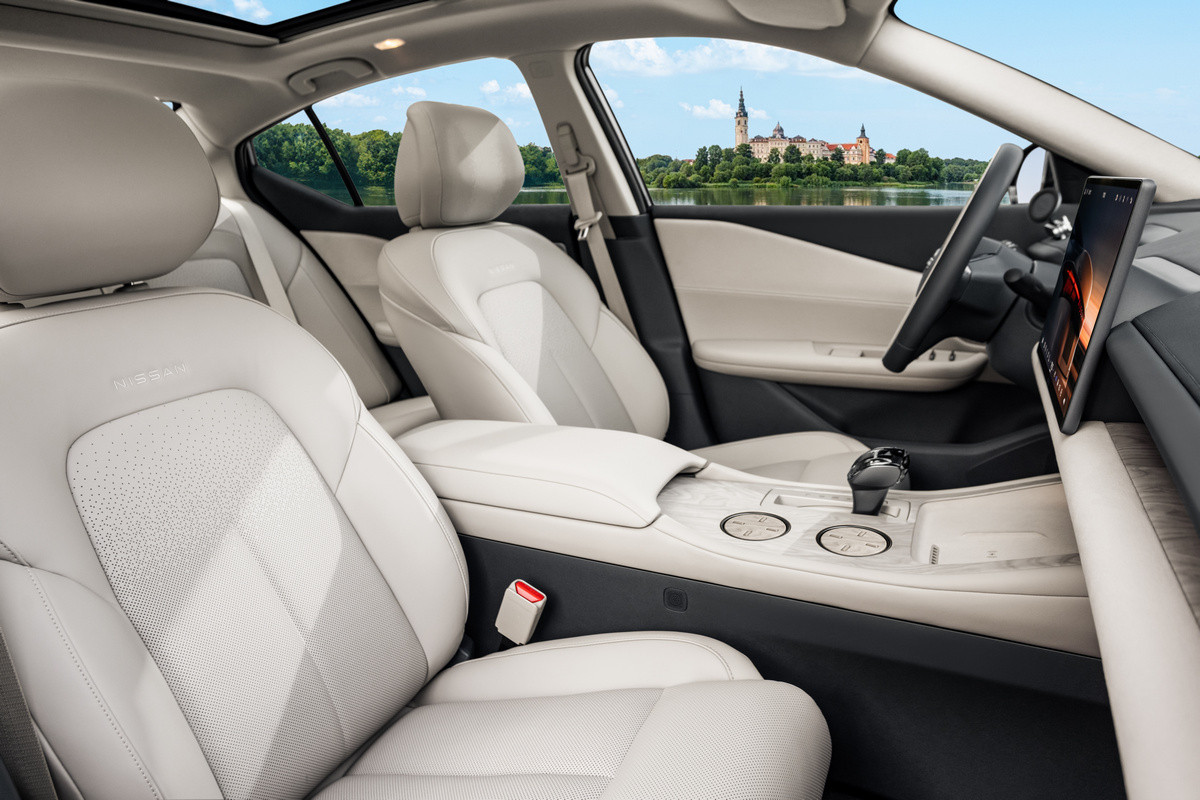 Массивного отдельного блока управления «климатом» больше нет – все настройки вшиты в тачскрин. При этом под центральными дефлекторами обдува все же имеется ряд физических дублирующих клавиш. В списке оборудования Nissan Teana также заявлены панорамный люк, подогрев, вентиляция и массажер кресел и беспроводная зарядка мощностью 50 Вт. Наконец, есть аудиосистема той же фирмы Huawei с 17 динамиками, один из которых «выезжает» из передней панели, а два встроены в подголовник водительского кресла.