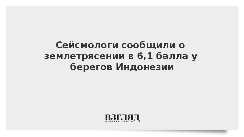 По данным, предоставленным ТАСС, Европейско-средиземноморский сейсмологический центр зафиксировал землетрясение магнитудой 6,1 у побережья Индонезии. Эпицентр находился в 99 км к северо-западу от города Тернате, в котором проживает 101 тыс. человек.