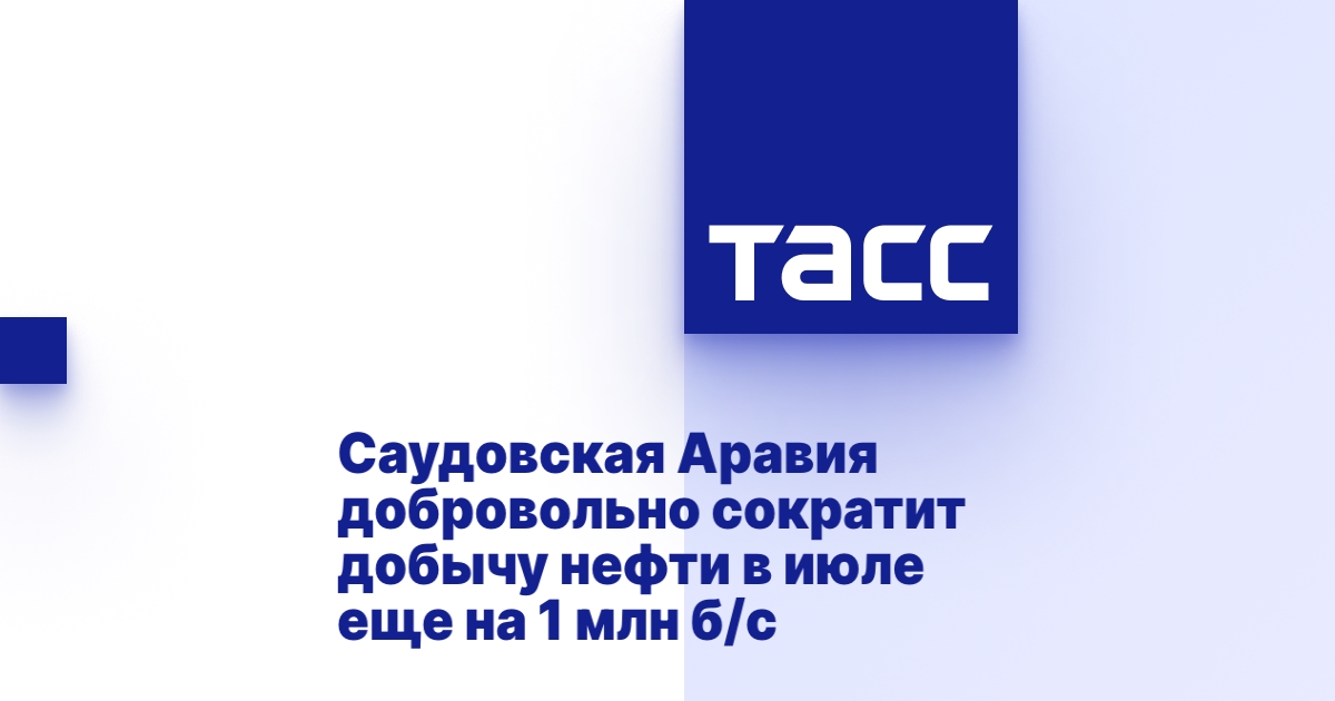 МОСКВА, 1 июля. /ТАСС/. Саудовская Аравия в течение июля будет добровольно сокращать добычу нефти еще на 1 млн баррелей в сутки (б/с) в дополнение к ранее принятому решению о сокращении производства на 500 тыс. б/с. Таким образом, в июле общий объем сокращения добычи королевством составит 1,5 млн б/с, а сам уровень производства - около 9 млн б/с.