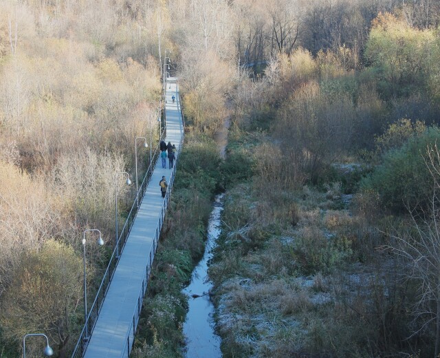 В парке у Центрального рынка уже проложена большая часть велопешеходных дорожек, оборудованы детская и спортивная площадки. В Серебрянском парке готовы велопешеходные дорожки по кромке долины, созданы спортивные и детские площадки, а также ведется строительство визит-центра.