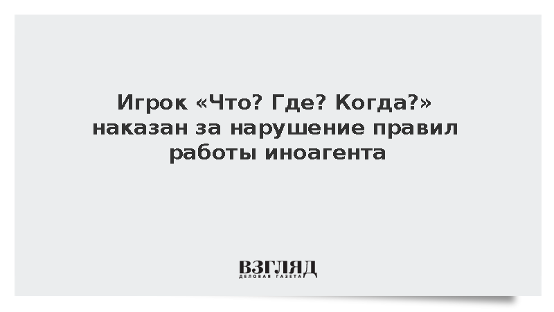 Игрок «Что? Где? Когда?» наказан за нарушение правил работы иноагента