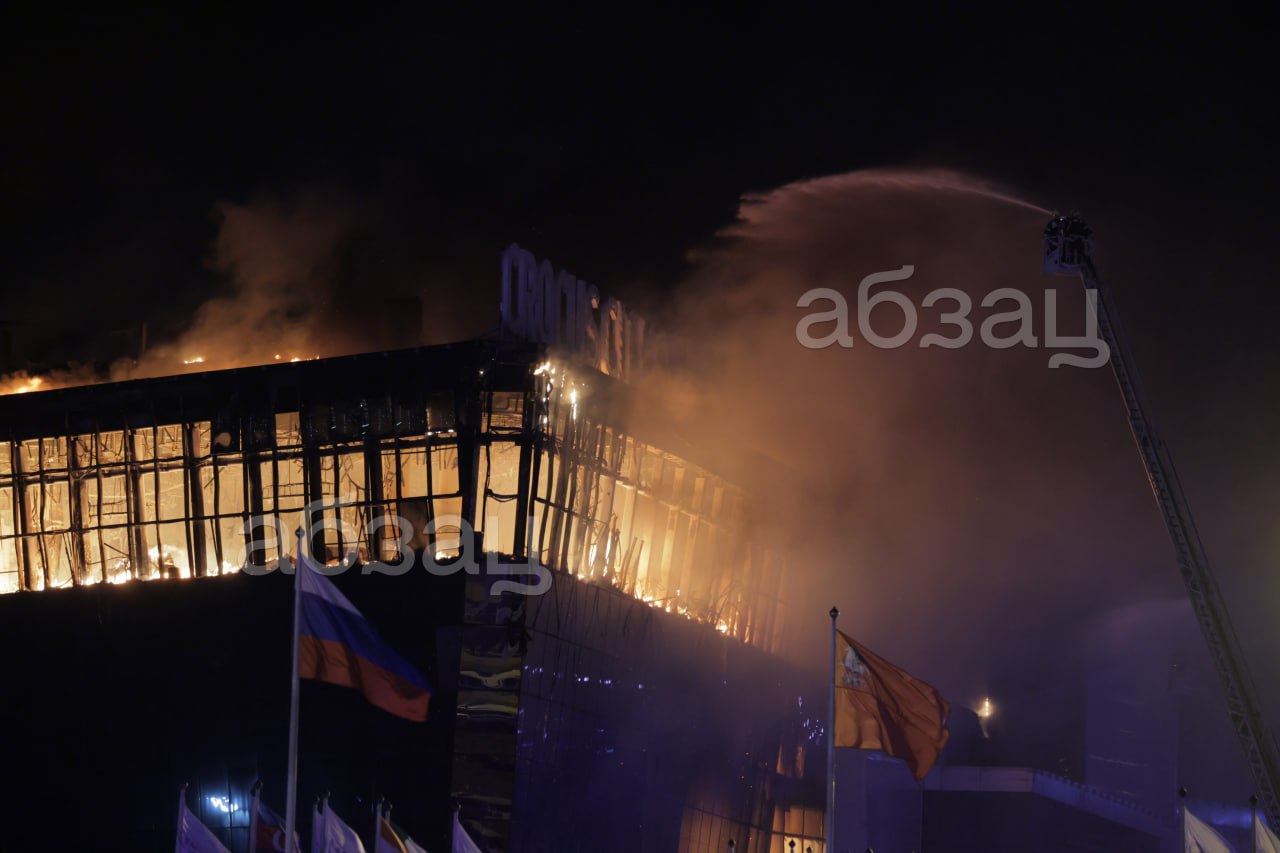 Тушение пожара в «Крокусе» продолжается Корреспонденты «Абзаца» работают на месте событий. Подписывайтесь на «Абзац»