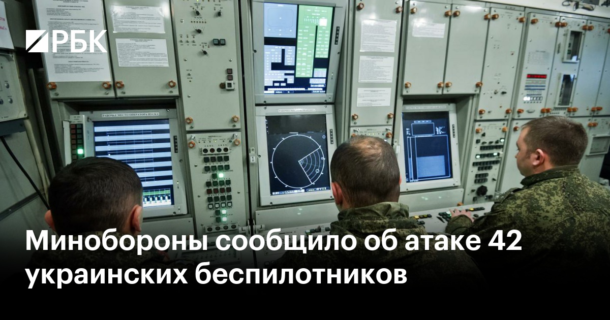Украина попыталась атаковать территорию России 42 дронами самолетного типа, российские военные пресекли атаку, сообщило Минобороны.