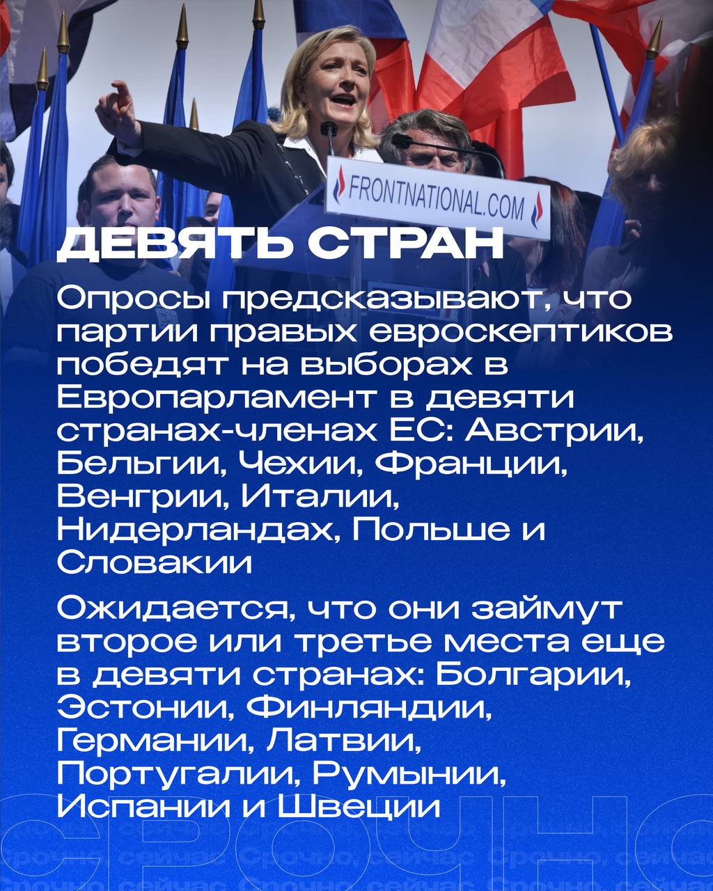 Перед Украиной встала новая угроза — и это не Россия. Дело в том, что в Европе на ближайших выборах начнут побеждать правые евроскептики. В 9 странах ЕС они уже занимают первые места по опросам, еще в 9 — вторые и третьи. Эти партии высказываются против помощи Украине и за нормализацию отношений с Россией. И приход их к власти несет для Украины риск полного прекращения поддержки со стороны Европы☝🏻