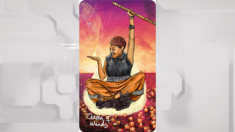 Королева Жезлов — карта уверенной, сильной, вдохновляющей женщины. Она управляет своими ресурсами с огнем, страстью и ясностью.
