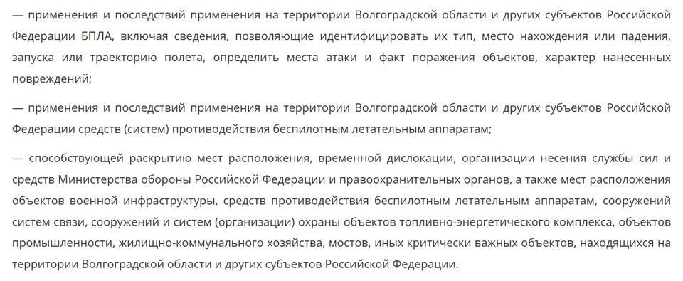 Запрещена публикация любой информации об атаках БПЛА, их последствиях и работе ПВО. Включая фото и видео, в СМИ и соцсетях.