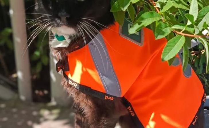 После того, как о Мусе рассказали в соцсетях, льговчанка Наталья Терехова сшила коту жилет железнодорожника. Муся жилет носит и даже дал себя в нём сфотографировать.