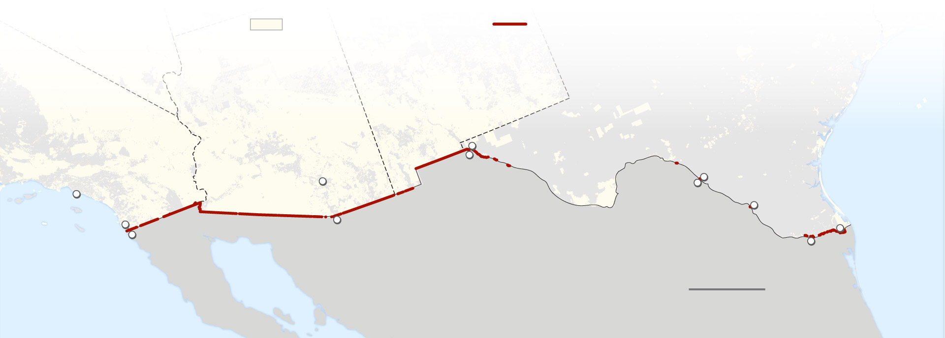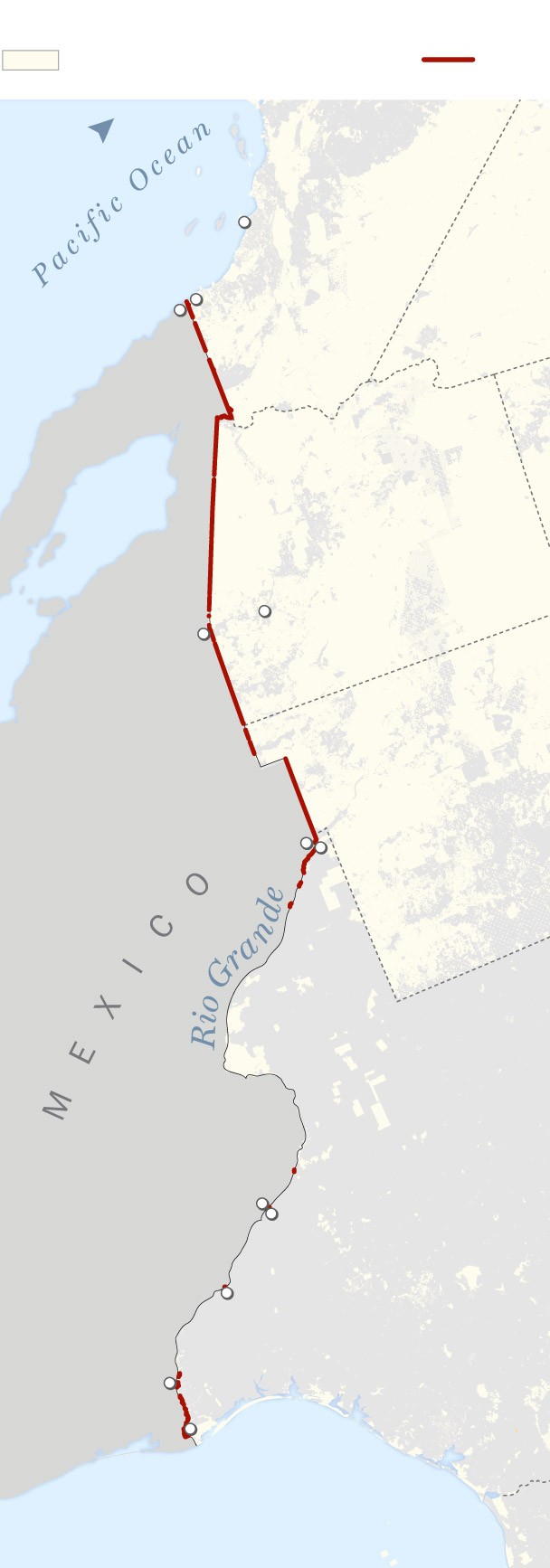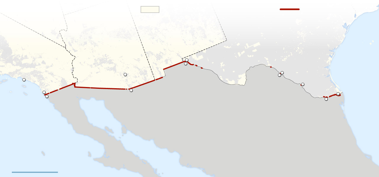 In New Mexico, Arizona and California, the government laid down hundreds of miles of new wall in neat straight lines through the desert, mostly on public land. A federal easement along the border dating to the Theodore Roosevelt administration facilitated the work.