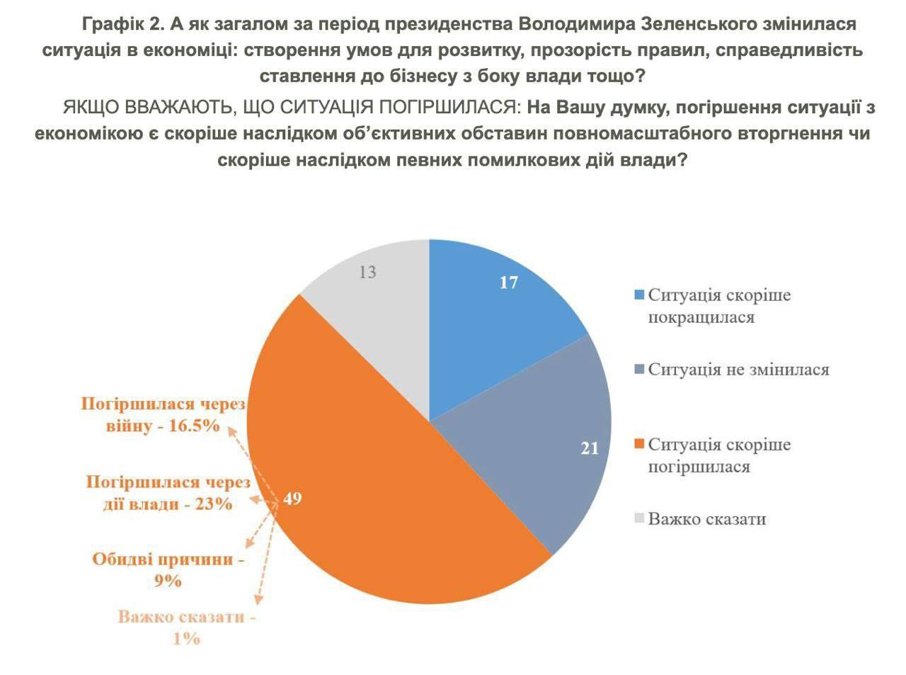 ✅ На вопрос, как изменилась ситуация в экономике за время президентства Зеленского (создание условий для ее развития, прозрачность правил, справедливость отношения власти к бизнесу…):