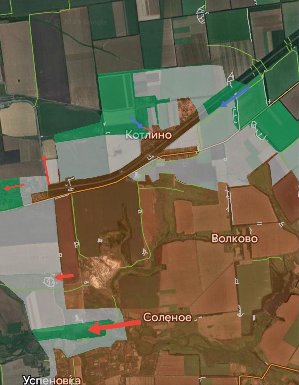 На северо-западной окраине Котлино — ожесточённые встречные бои. Противник пытается атаковать наши подразделения в Котлино с востока. Так, нашими было выявлено сосредоточение штурмовых групп ВСУ в опорном пункте в посадке восточнее. По противнику был нанесены удары артиллерией и БПЛА. Из-за понесённых потерь враг вынужден был отказаться от контратаки. Не до того стало...