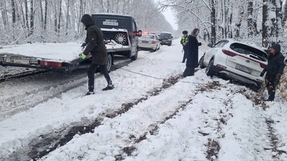 Как выяснилось, водитель не справилась с управлением на скользкой дороге. В результате ее автомобиль съехал с проезжей части. Самостоятельно выбраться на дорогу она не смогла.