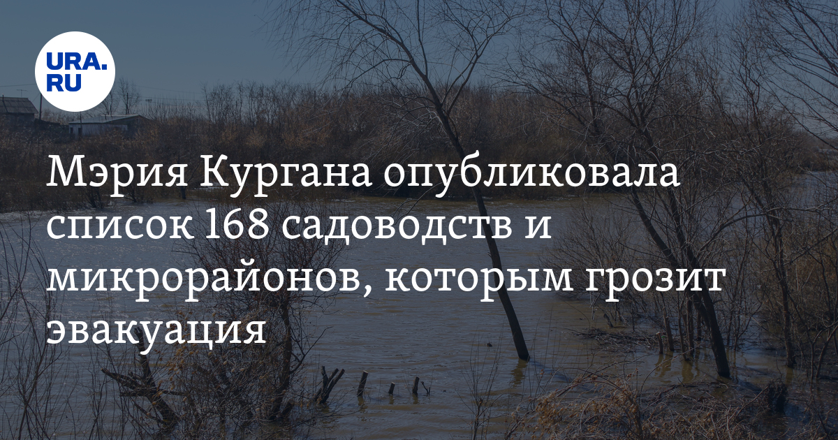 «Публикуем список территорий и объектов, которые могут оказаться в зоне подтопления в Кургане. С 8 апреля пункт временного размещения граждан будет развернут на базе лагеря имени Николая Островского», — говорится в сообщении представителей городской администрации.