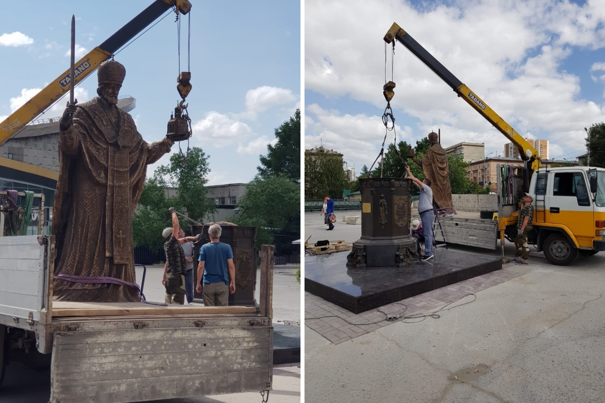 Днем 20 июня в Новосибирске у Нарымского сквера установили памятник Николаю Чудотворцу. Видео с места в редакцию НГС прислал читатель Александр.