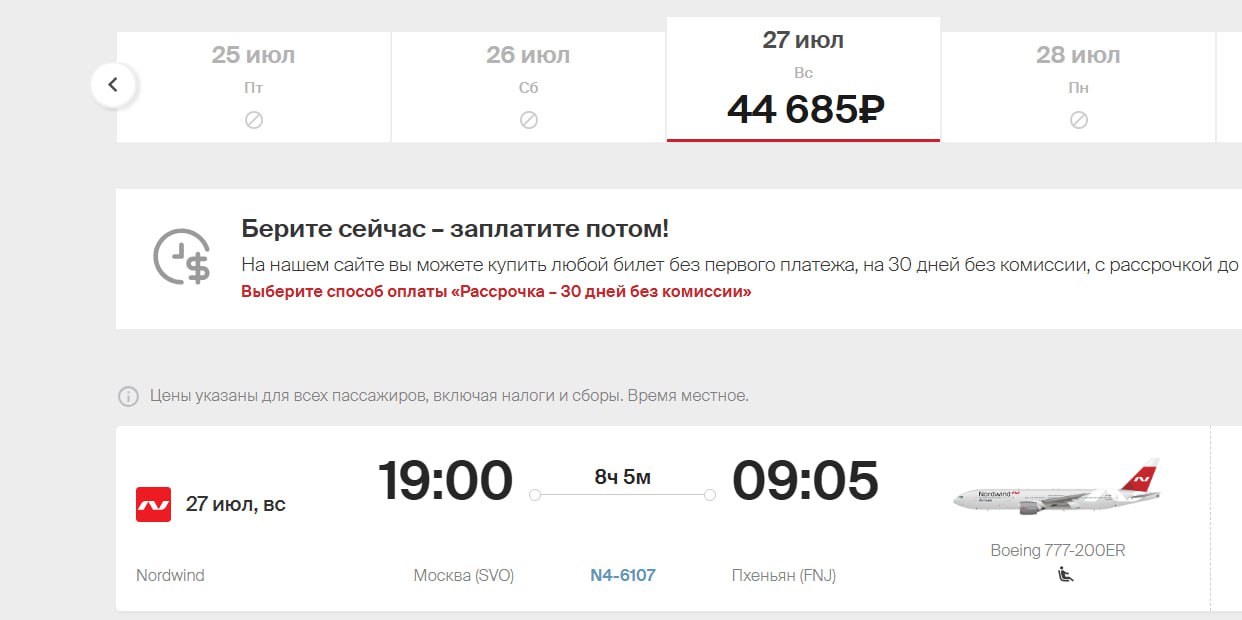 Nordwind открыл продажу билетов на авиарейсы из Москвы в Пхеньян.