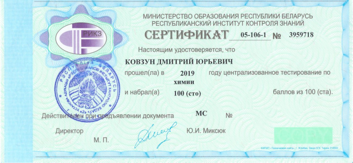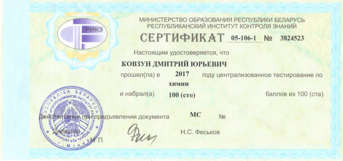 Дмитрий, преподает химию. Сдавал ЦТ минимум семь раз