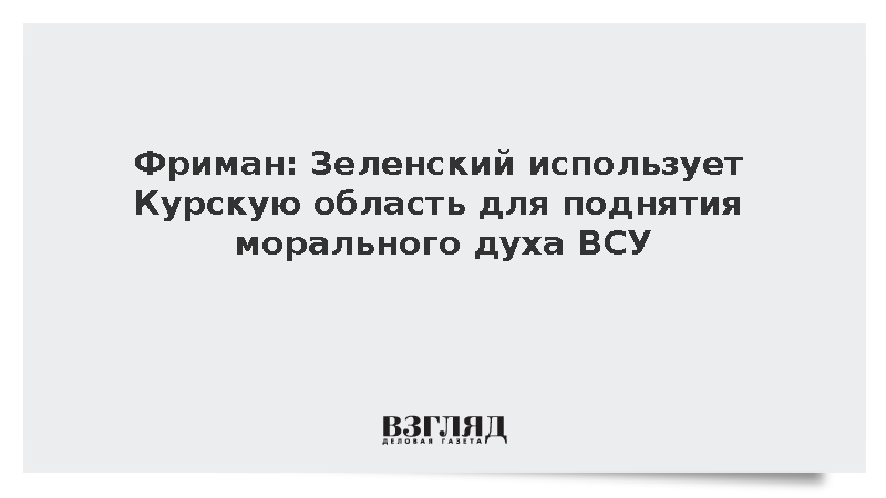 Нападение украинской стороны на Курскую область было необходимо Владимиру Зеленскому для поднятия морального духа войск, заявил бывший помощник главы Пентагона по международной безопасности Час Фриман.