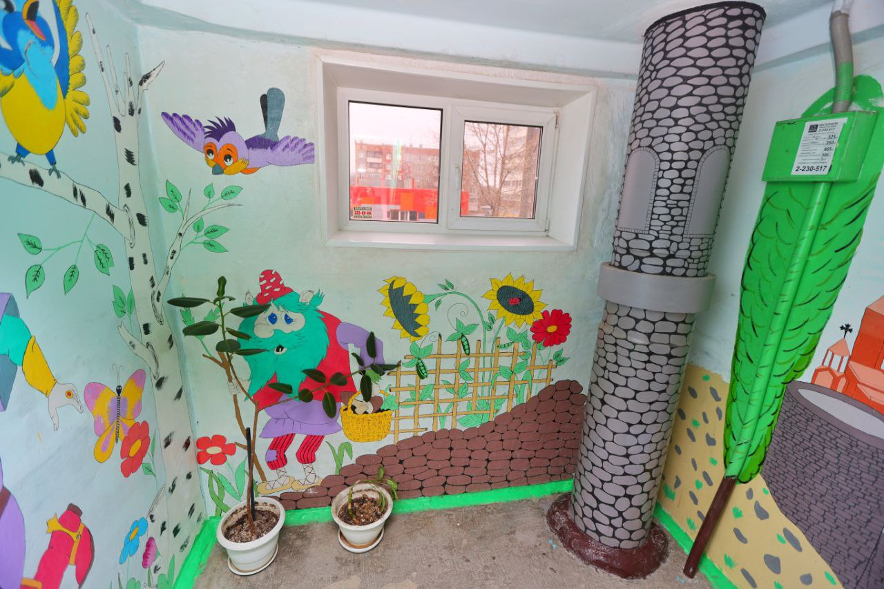На эти деньги челябинцы заменили старые деревянные окна пластиковыми, на пол положили плитку, покрасили перила и оштукатурили стены. Однако на этом Наталья останавливаться не хотела и предложила придать стенам подъезда интересный вид, разрисовав их.