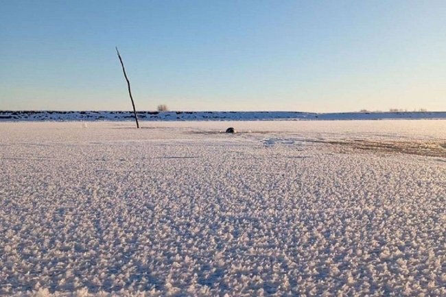 Рыбаки с Ямала заметили на реке Оби нерпу, которая выбралась на лед, чтобы насладиться теплом.