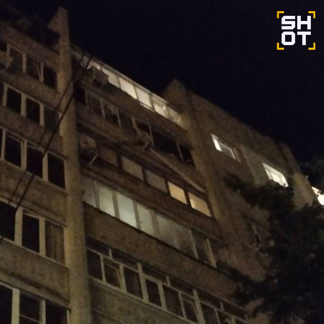 Обломки дрона попали в верхние этажи здания. Повреждены минимум две квартиры. Власти обещают в ближайшее время заняться ремонтом.
