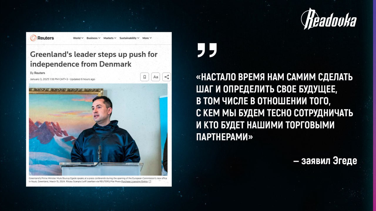 Несмотря на то, что предложение Трампа встретило резкий отпор, оно явно усилило в гренландском обществе риторику отделения от Дании. Как ранее писала Readovka, не добившись ответа силой, президент США так или иначе попытается добиться своего — а если Гренландия освободится из-под контроля своей континентальной хозяйки, она, во всяком случае, станет для Вашингтона более легкой добычей.