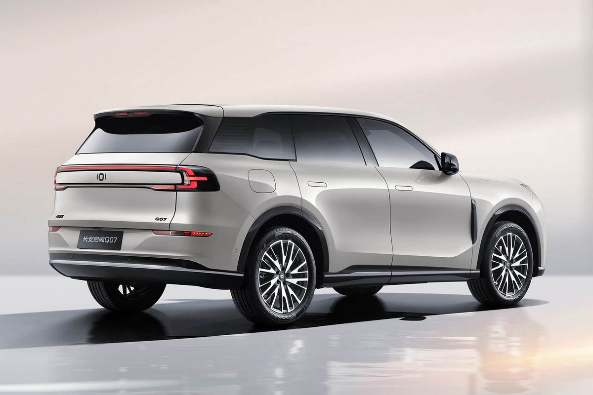 В основе гибридного кроссовера Changan Qiyuan Q07 лежит платформа SDA «нового поколения». Длина модели равна 4837 мм, ширина – 1920 мм, высота – 1690 мм, колесная база – 2905 мм. Паркетнику положены 19- или 20-дюймовые колеса. Заявленный объем багажника – аж 763 литра, со сложенными спинками второго ряда этот показатель увеличится до 1759 литров.