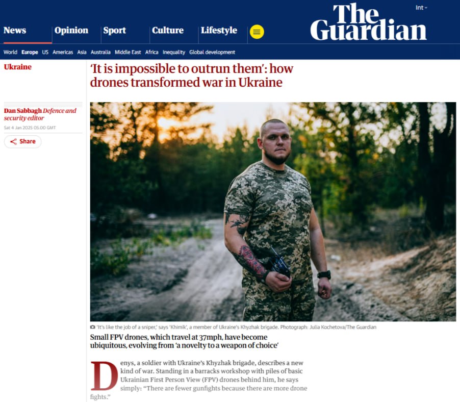 🔹 Благодаря небольшим FPV-дронам, которые развивают скорость до 60 км/ч, ВСУ получили возможность обеспечивать оперативный контроль территории, чтобы «быстро подвозить бронетехнику к линии фронта и обратно», пишет The Guardian.