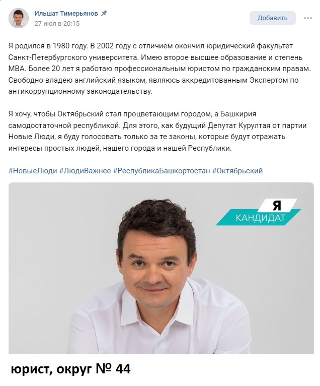 В праймериз «ЕР», к слову, участвовало довольно много журналистов. Но дошел до выборов по округам только Айгиз Баймухаметов (издательский дом «Республика Башкортостан», главный редактор журнала «Шонкар»), после спектакля по книге которого в свое время закрыли Серменевский детский дом. У Баймухаметова в конкурентах – учитель, самозанятый, безработный, а также глава сельсовета от КПРФ – Аетбай Аюпов.