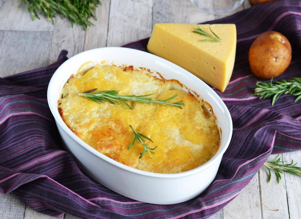 4. Получившимся соусом полить картофель, посыпать сыром и запекать 40 минут при 180-200 градусах. Приятного аппетита!