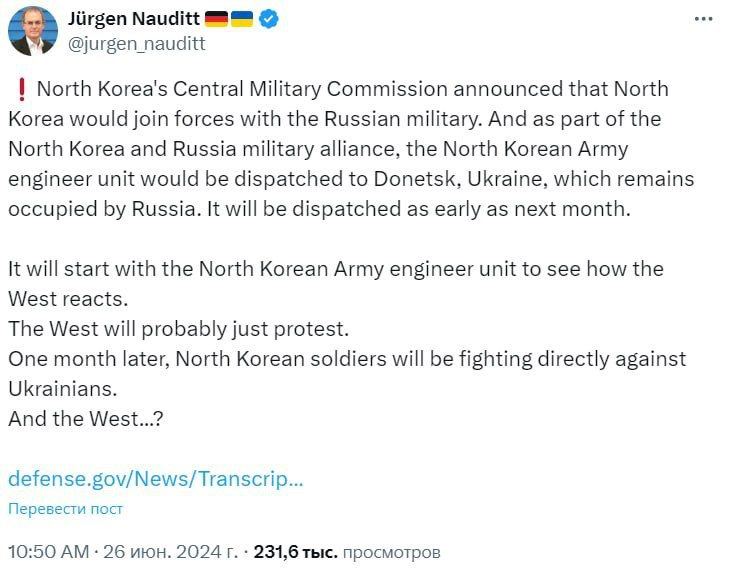 🇰🇵🇷🇺 Ким Чен Ын направит в зону СВО инженерные подразделения армии Северной Кореи – немецкий обозреватель Юрген Наудитт