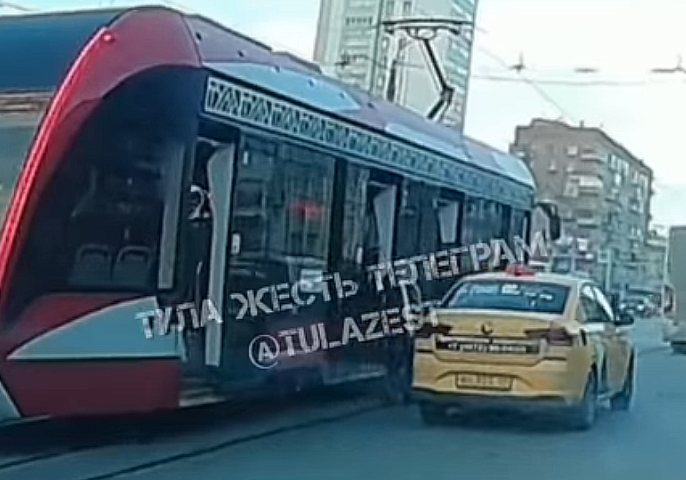 На улице Советской в Туле водитель такси чуть не сбил людей, вышедших из трамвая. Об этом очевидцы рассказали в telegram-канале «Тула Жесть».