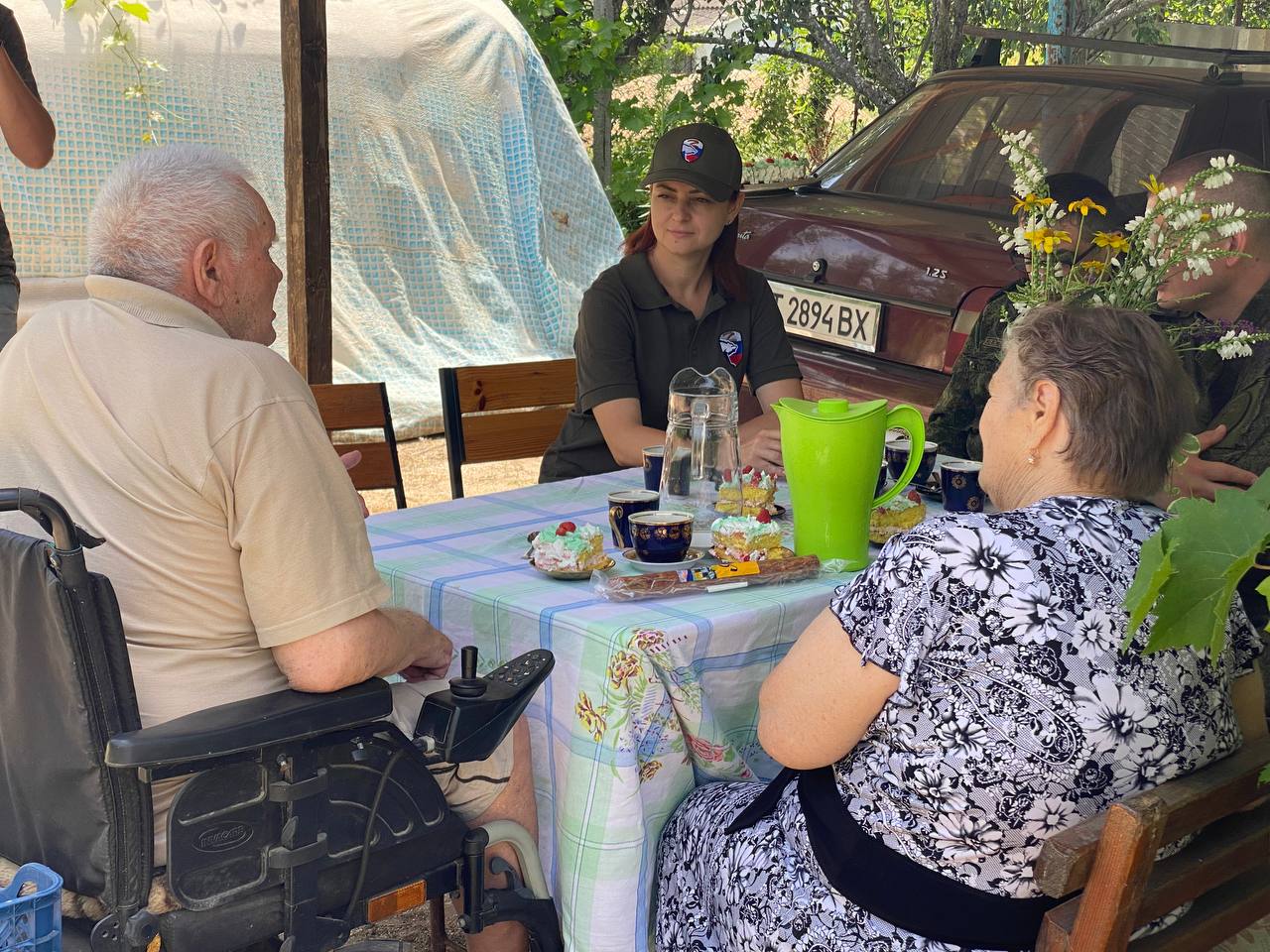 У семьи Кобылянских с весны этого года живёт семейная пара, которая была вынуждена переехать из Каховки. Вместе 36 лет. От партии "Единая Россия" и благотворительного фонда "Переправа" супругам передали одежду и вручили небольшой сувенир к празднику, который у них сегодня двойной, ведь именно 8 июля 1987 года они вступили в законный брак.