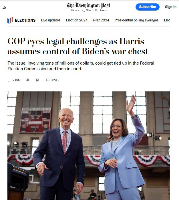 Ранее сообщалось, что предвыборная компания вице-президента США за несколько часов набрала $46,7 млн. Также Associated Press писали, что Харрис сможет использовать деньги предвыборной компании Байдена.