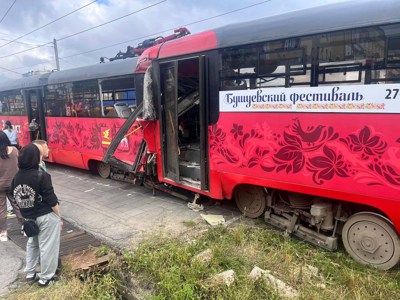 Два трамвая столкнулись в Златоусте. Схема та же, что и месяц назад в столице Кемеровской области. Тогда так же столкнулись два попутных трамвая — состав догнал впередиидущий вагон и врезался в него на скорости.