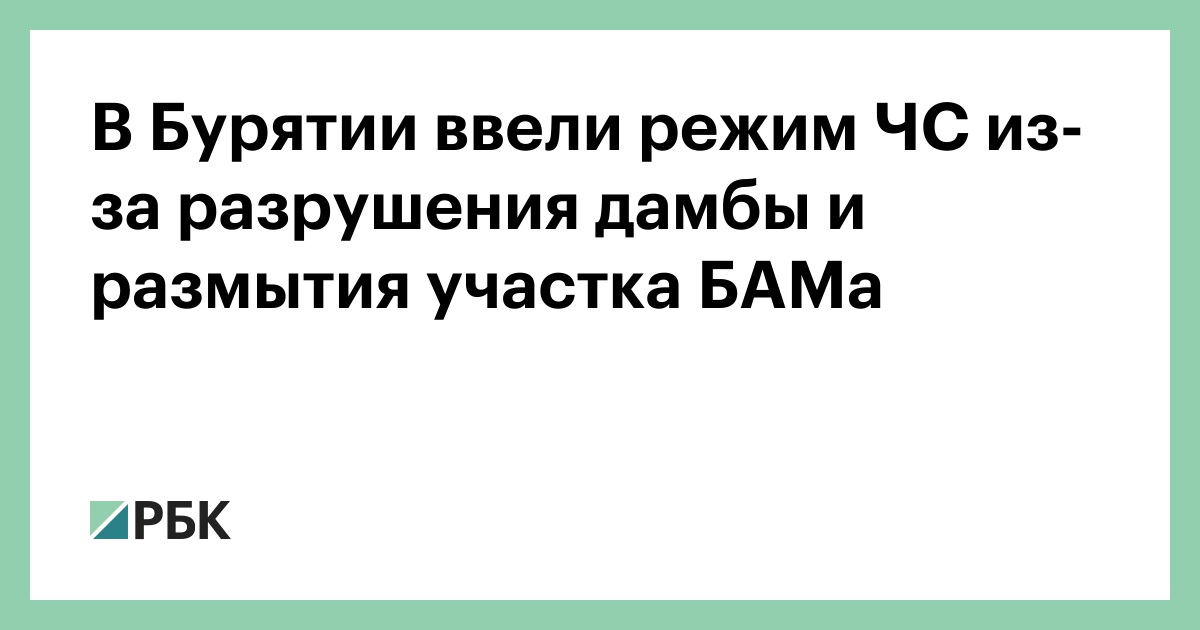 В Северо-Байкальском районе Бурятии с 20 августа введен режим ЧС регионального масштаба после выхода из берегов реки Холодная, разрушения дамбы и размыва участка Байкало-Амурской магистрали (БАМ). Соответствующее распоряжение подписал глава региона Алексей Цыденов, сообщила пресс-служба правительства республики в телеграм-канале.