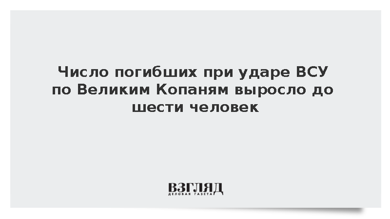 Число жертв ракетного удара Вооруженных сил Украины (ВСУ) по рынку в Великих Копанях Херсонской области увеличилось до шести человек, передает ТАСС.