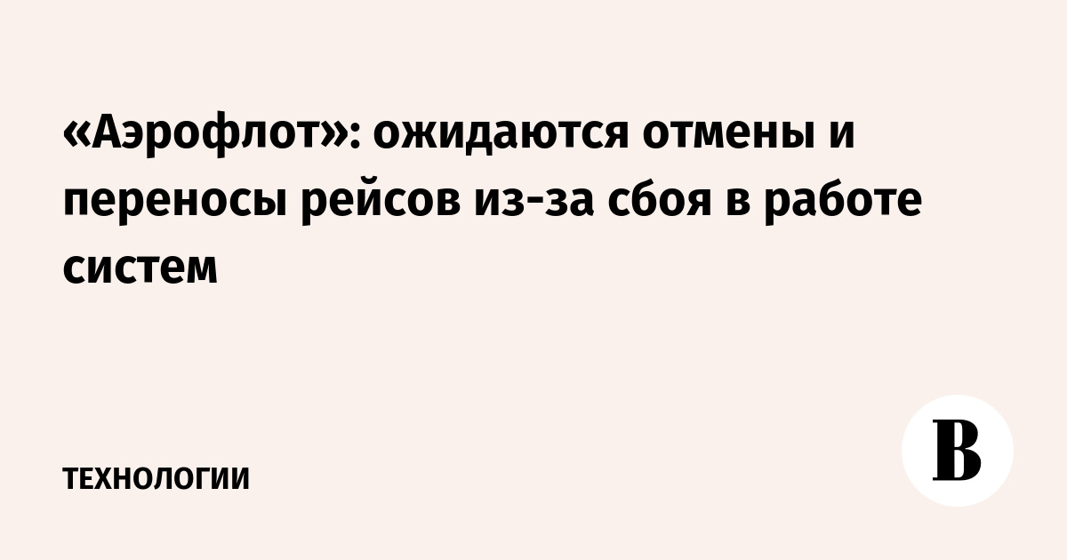 В работе информационных систем «Аэрофлота» произошел сбой. Расписание рейсов будет вынужденно скорректировано – в том числе, путем переноса и отмены. Возможны перебои в работе сервисов, сообщается в Telegram-канале пресс-службы авиакомпании.