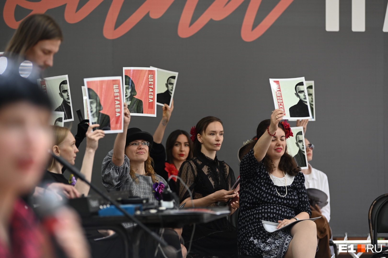 После выступления прекрасных девушек на сцену вышли поэты, чтобы сразиться в дуэли «Моя Цветаева / Мой Маяковский». Правила необычного поединка были просты: команды Цветаевой и Маяковского по очереди читали стихотворения легендарных авторов.