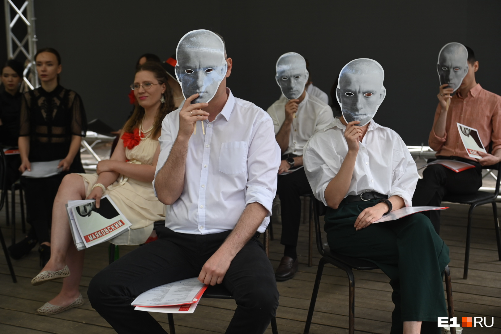 Команда Маяковского придумала необычный интерактив: надела маски с изображением поэта.