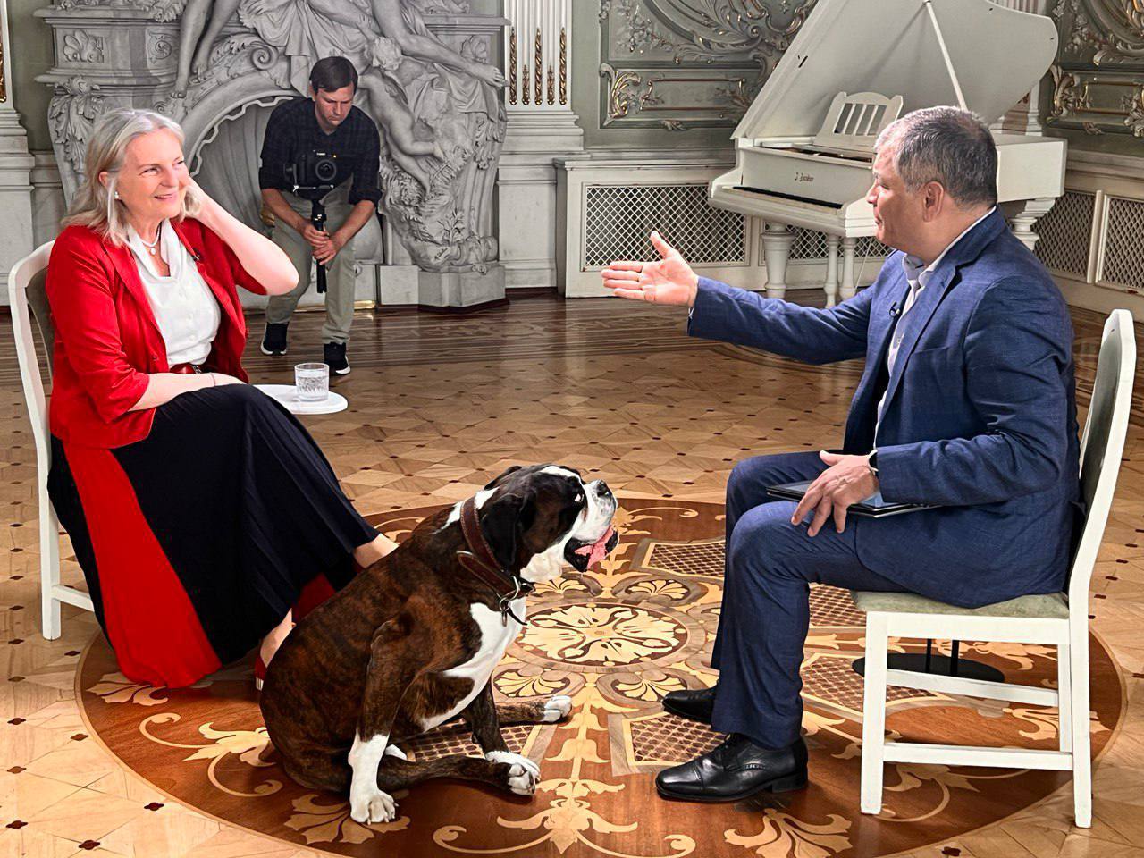 Бывший президент Эквадора, а теперь наш ведущий Рафаэль Корреа берет интервью у бывшего министра иностранных дел Австрии Карин Кнайсль, а теперь нашего колумниста, в Санкт-Петербурге.