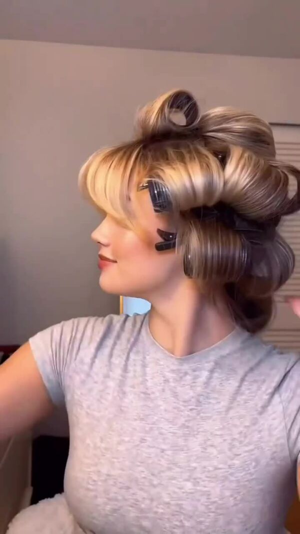 Секрет укладки такой стрижки в том, чтобы все выглядело красиво, но как бы не идеально. На чистые влажные волосы наносим термозащиту. Это обязательный шаг: не пропускайте его даже в отпуске. Затем немного мусса для объема, особенно у корней. Стайлером создаем легкие волны, но не делаем слишком тугие локоны: помним, что наша задача — создать не «барашков», а лишь плавный завиток. После этого берем крупные бигуди и накручиваем полученные волны, чтобы придать им дополнительный объем и сделать изгибы более мягкими. Даем прядям остыть, фиксируем лаком средней фиксации. Потом аккуратно снимаем бигуди и снова немного сбрызгиваем лаком, но не увлекаемся — мягкость должна остаться.