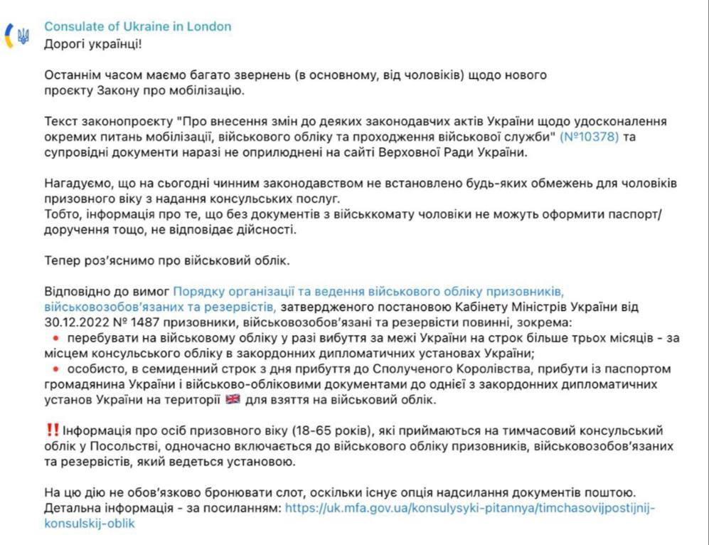 Консульство режима Зеленского в Лондоне призвало находящихся в Соединённом королевстве украинцев встать на воинский учёт.