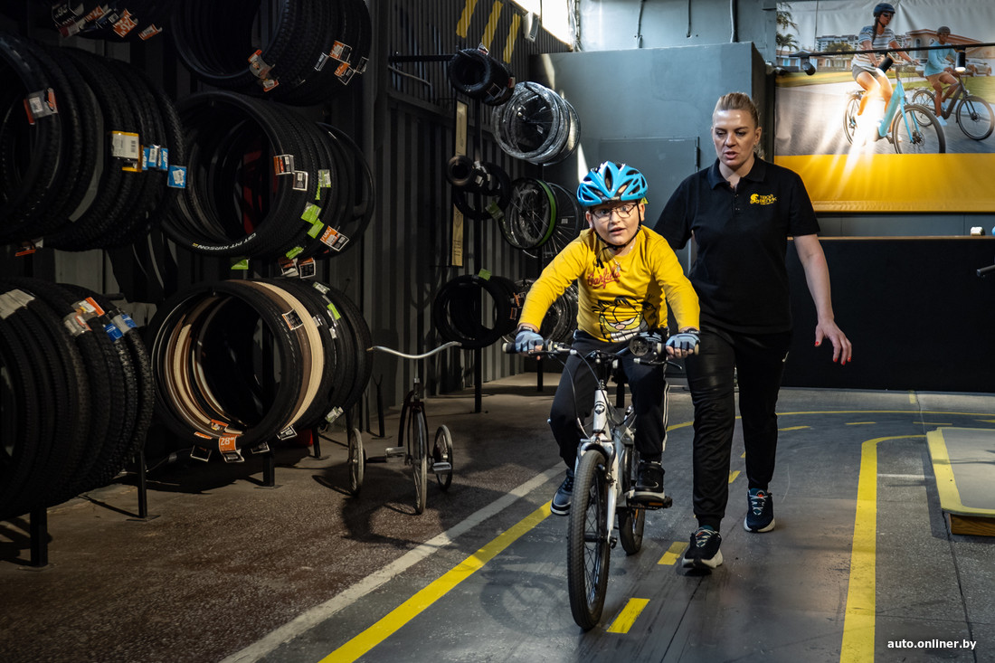 — На индивидуальные занятия приходят дети, которым по 8 лет, по 9, по 10. То есть идеальный момент уже упущен, в раннем возрасте на велосипед они не сели. Это актуальная проблема в последнее время, — говорит Елена. — И с ними мы начинаем так же, как на беговеле, — с самых азов. У меня есть и беговел (можно сказать, спецзаказ, с большой трубой), и велосипед на 20-дюймовых колесах, с которого сняли педали. И вот мы начинаем шагать, поднимать ноги — учимся.