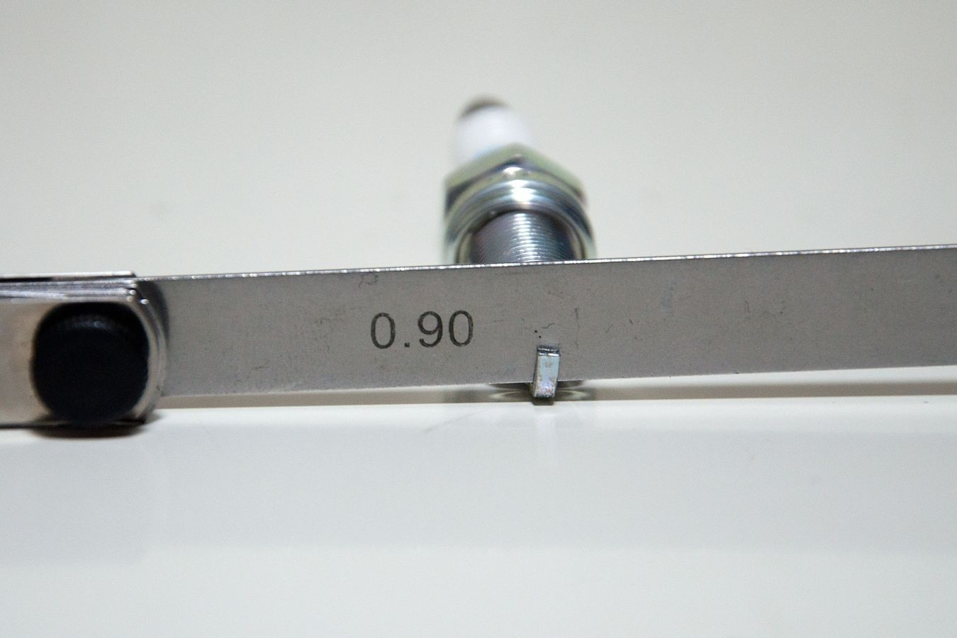 Допустим, свеча сухая. Что дальше? Дальше изучаем электроды – центральный и боковой (или боковые, если свеча многоэлектродная). Разумеется, их вид не должен вызывать никаких подозрений (иметь нагар или следы существенного выгорания), но лучше для проверки зазора использовать щуп. Обычный зазор электродов свечи для инжекторного мотора – около 0,9 мм. Вряд ли небольшие отклонения приведут к существенному количеству пропусков зажигания, но желательно, чтобы он был в норме.
