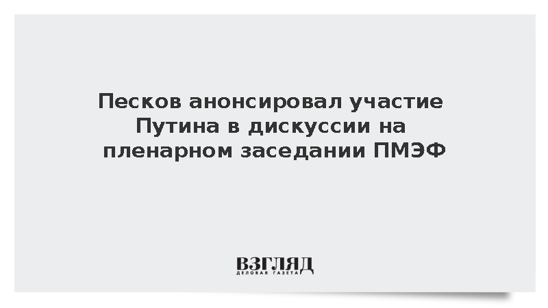 Президент Владимир Путин примет участие в дискуссии на пленарном заседании Петербургского международного экономического форума, сообщил пресс-секретарь главы государства Дмитрий Песков.
