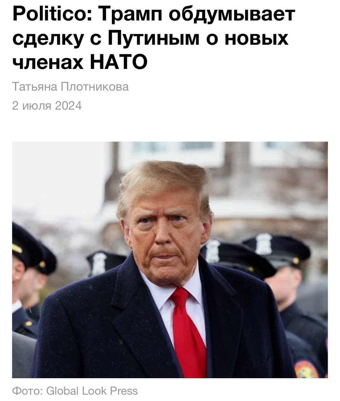 При этом не исключено, что Трамп заключит сделку с Владимиром Путиным относительно того, какие страны в будущем смогут присоединиться к НАТО.